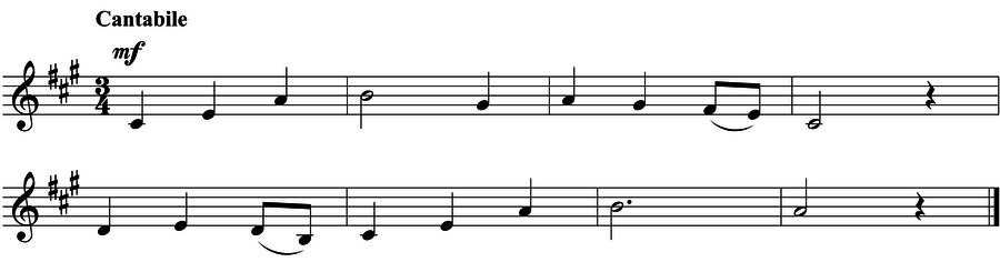 Cantabile in A Major Voice sight reading practiceGrade 4 sight reading exercise